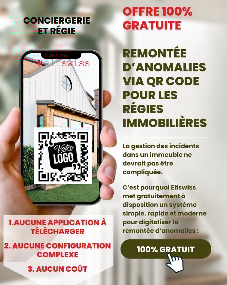 Dans un immeuble, chaque anomalie compte : éclairage défectueux, porte qui ferme mal, propreté insuffisante, fuite, bruit, ascenseur bloqué, etc. Pourtant, la plupart des régies perdent encore du temps avec des appels, des emails éparpillés ou des signalements incomplets. Chez Elfswiss, nous proposons une solution simple, rapide et surtout totalement gratuite pour digitaliser la remontée d’anomalies.